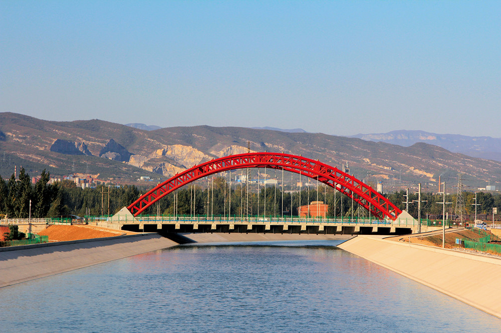 其中,沙河渡槽,全長9050m,由5個結構段組成,是南水北調中線工程控制性建筑物之一,也是目前世界上綜合規模最大的渡槽工程。具有以下特點:1、并行四槽輸水,世界第一。2、目前世界上最大的預制渡槽、最重的吊裝渡槽。3、在已架設渡槽的槽壁上鋪設軌道,實現“槽上運槽”,世界首創。4、世界上首座采用大型成套機械設備和架槽機施工的渡槽。