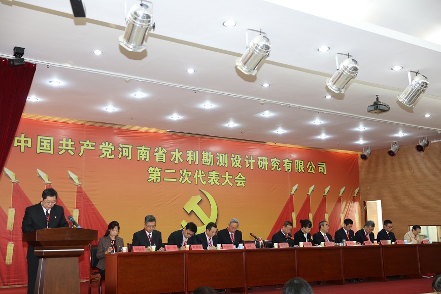 2018年10月26日上午,中國共產黨河南省水利勘測設計研究有限公司第二次代表大會在公司勝利召開,與會代表共69人。省水利廳黨組成員、副廳長楊大勇,廳直機關黨委專職副書記翟艷君到會指導。會議聽取并審議了翟淵軍同志代表中共河南省水利勘測設計研究有限公司第一屆委員會所作的工作報告;審議了中共河南省水利勘測設計研究有限公司第一屆紀律檢查委員會的工作報告;選舉產生了中共河南省水利勘測設計研究有限公司第二屆委員會和紀律檢查委員會。楊大勇副廳長在會上作了重要講話:對會議的召開表示熱烈祝賀,對公司黨委的工作給予了充分肯定,并就新形勢下非公企業如何抓好黨建工作、如何落實習近平總書記近期對民營企業指示精神提出要求與希望。