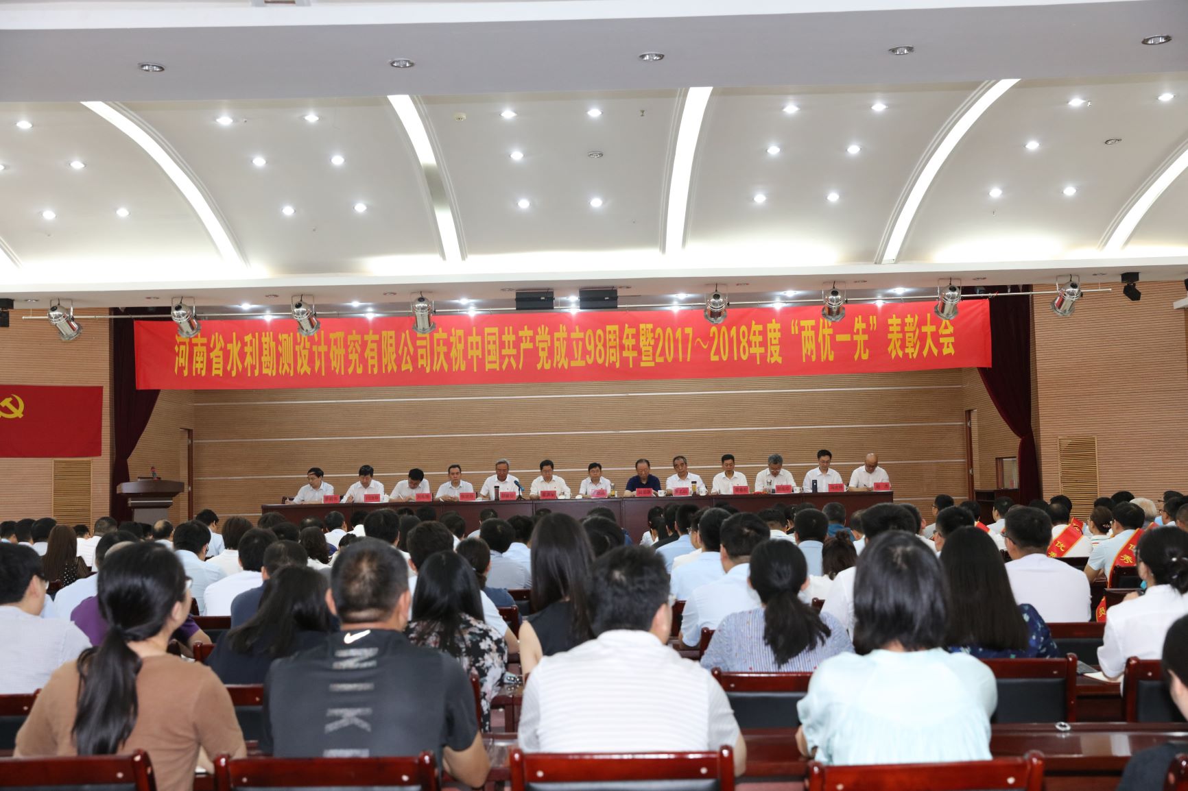 6月28日上午,河南省水利勘測設(shè)計(jì)研究有限公司慶祝中國共產(chǎn)黨成立98周年暨“兩優(yōu)一先”表彰大會隆重舉行。公司200余名黨員齊聚一堂,大家整齊著裝、胸佩黨員徽章,共同慶祝中國共產(chǎn)黨98歲華誕。水利廳副廳級領(lǐng)導(dǎo)、總工程師李斌成、廳直機(jī)關(guān)黨委副書記劉亞琪出席大會。