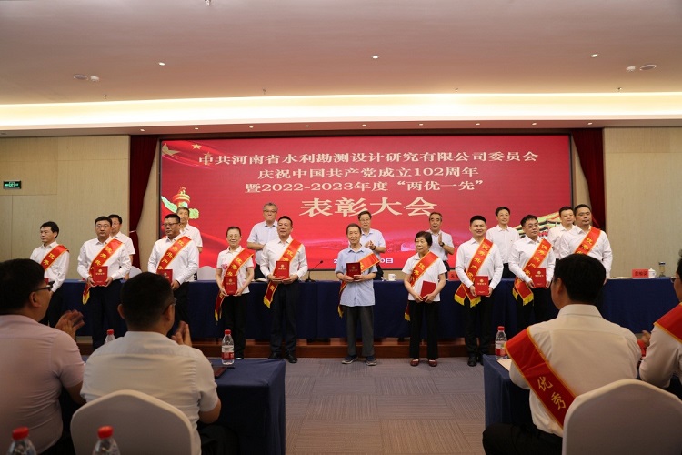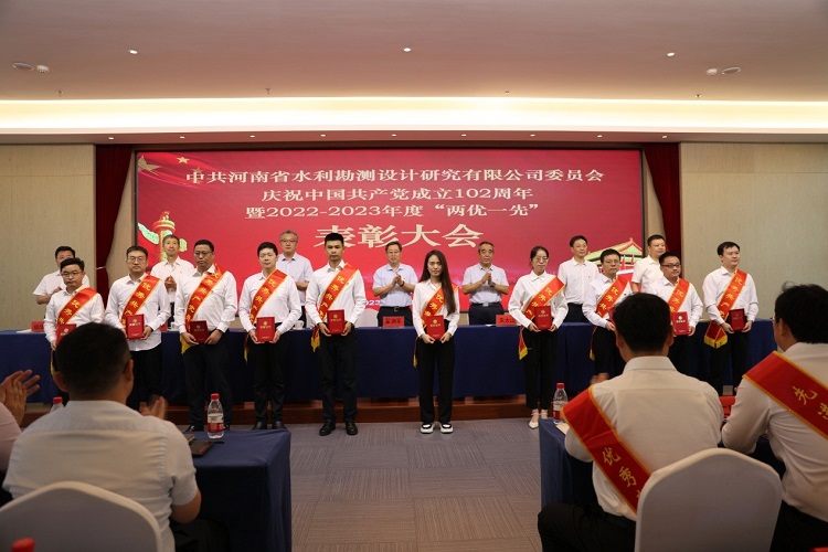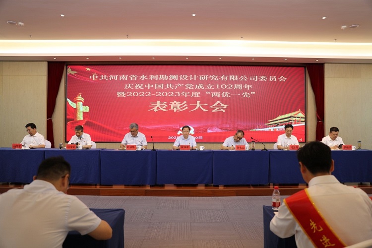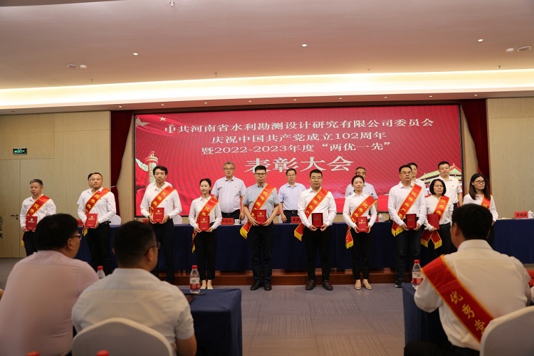 6月30日上午,中共河南省水利勘測設計研究有限公司委員會隆重舉行慶祝中國共產黨成立102周年暨2022-2023年度“兩優一先”表彰大會,熱烈慶祝偉大的中國共產黨102歲華誕,系統總結公司兩年來黨建工作,表彰2022-2023年度優秀共產黨員、優秀黨務工作者和先進黨支部,動員全體共產黨員向先進學習、向模范看齊,進一步激發廣大黨員群眾干事創業動力和熱情,共同為豫水設計的美好明天團結奮斗。會議由公司黨委委員、總經理朱太山主持。