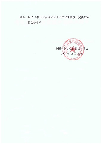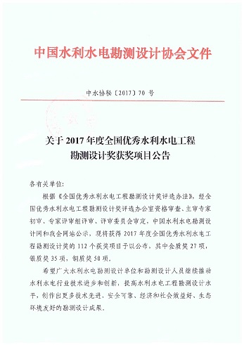 11月28日,中國(guó)水利水電勘測(cè)設(shè)計(jì)協(xié)會(huì)發(fā)布《關(guān)于2017年度全國(guó)優(yōu)秀水利水電工程勘測(cè)設(shè)計(jì)獎(jiǎng)獲獎(jiǎng)項(xiàng)目公告》 [中水協(xié)秘〔2017〕70號(hào)]文件,對(duì)獲得2017年度全國(guó)優(yōu)秀水利水電工程勘測(cè)設(shè)計(jì)獎(jiǎng)的112個(gè)項(xiàng)目進(jìn)行了表彰。設(shè)計(jì)公司報(bào)送的《南水北調(diào)中線一期工程總干渠沙河渡槽段工程》和《南水北調(diào)中線一期工程總干渠沙河南~黃河南禹州和長(zhǎng)葛段工程》兩個(gè)項(xiàng)目,均被評(píng)為金質(zhì)獎(jiǎng)。