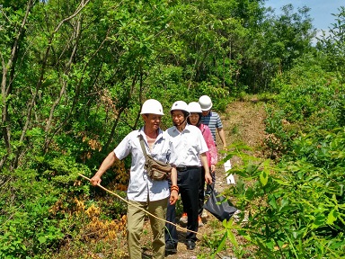 商城縣韓樓水庫是當地精準扶貧項目之一,雖然工程建設規模較小、地質條件復雜、夏季蛇蟲較多,但是勘察現場技術人員克服諸多苦難,按照計劃穩步推進各項現場工作。在勘察院曹建忠的帶領下,審核組一行人員頂著炎炎烈日,沿著崎嶇的山路徒步前往勘察現場,實地檢查作業情況。