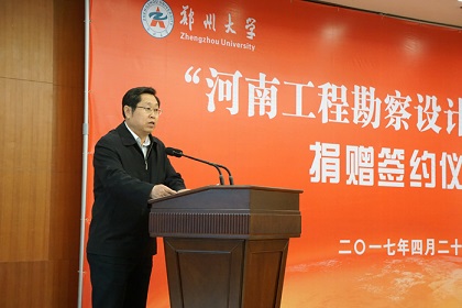 4月20日,“河南工程勘察設(shè)計(jì)”獎(jiǎng)學(xué)金捐贈(zèng)簽約儀式在鄭州大學(xué)校園舉行。鄭州大學(xué)副校長宋毛平代表鄭州大學(xué)致辭,介紹了鄭州大學(xué)的發(fā)展歷程和鄭州大學(xué)教育發(fā)展基金會(huì)的現(xiàn)狀,對(duì)協(xié)會(huì)所做工作表示感謝,對(duì)捐贈(zèng)單位支持教育事業(yè)、熱心奉獻(xiàn)社會(huì)的卓識(shí)善舉表示敬意。
