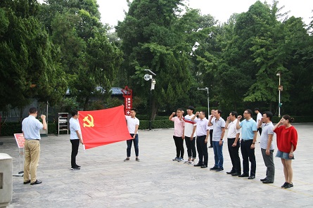瞻仰焦裕祿烈士墓后,參加活動的全體同志面對黨旗、佩戴黨徽章,莊嚴地重溫了入黨誓詞。入黨誓詞,激蕩著共產黨人的信仰;“為共產主義奮斗終身”,蘊藏著共產黨人的初心。