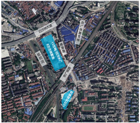 選址選線:污水處理廠與1#調蓄池合建,布置于白沙洲大道、南湖路、京廣鐵路及巡司河合圍的區域,位于京廣鐵路以北;2#調蓄池布置于曬湖箱涵與南湖路之間的三角地帶,位于京廣鐵路以南。兩處所選廠址地上均建設成為城市公園。項目位置如下圖所示。