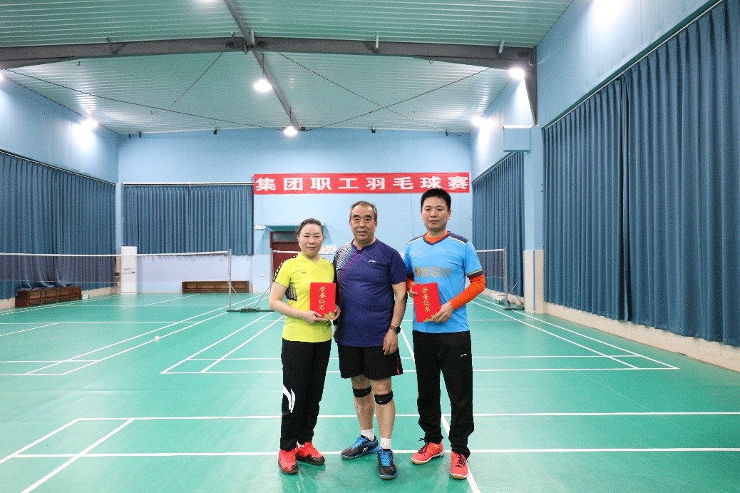 經過上述多輪激烈角逐,最終韓錦梅/張潔祥、高英/袁楠、賈少燕/馮海霞分獲女雙冠亞季軍,鮑捷/韓錦梅、田耕/賈少燕、崔航飛/高英分獲混雙冠亞季軍,王帥/鮑捷、嚴勇/李彬、王長海/張亞輝分獲男雙冠亞季軍。朱總代表公司領導向獲得冠軍的選手頒發了獎狀并合影留念。