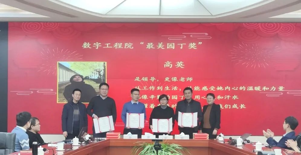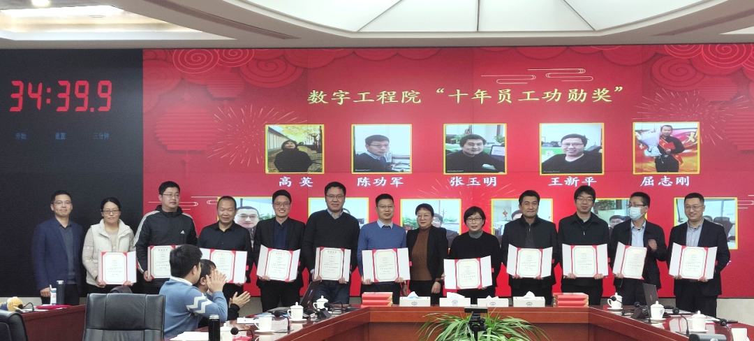 接著,高英院長做了簡潔且詳盡的總結,從生產項目、科技創新、人才培養、知識產權和外部獎項申報等考核指標對數字院2021的工作進行量化分析,重點指出了不足,明確了未來的重點,提出了“基礎筑牢、穩中求進、需求牽引、適度前瞻、一專多能”的部門發展思路,并從“知世故而不世故、善良是一種品德、感恩是一種境界”給出了為人做事的準則,倡導大家自覺主動、積極創新的工作和生活態度,并對部門“德才兼備 以德為先”“情系團隊 樂在奉獻”的員工代表進行了表彰,鼓舞了士氣。