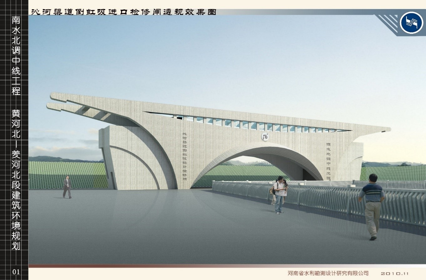 本次參評“2022優秀青年設計師”,杜暉同志向大賽評委提交了由她主持的南水北調中線一期工程(河南段)水工建筑景觀設計成果。秉承“安全、和諧、創新、集約、可持續發展”設計原則,充分結合南水北調中線工程自身特點和沿線地區自然文化特征,項目總體方案可概括為“一軸、三圈、多點景觀網絡”。設計上,向兩個維度進行了拓展。縱向,沿線地區整體考慮,即主體工程為軸線,沿線布置三個自然文化景觀圈,包括沙河煙波、焦作彩城、安陽殷風等多個重要景觀節點;橫向,工程占地紅線內外相互融合,注重水工建筑與水環境氛圍營造,同時加強周邊的建設和利用,著力打造綜合性工程。