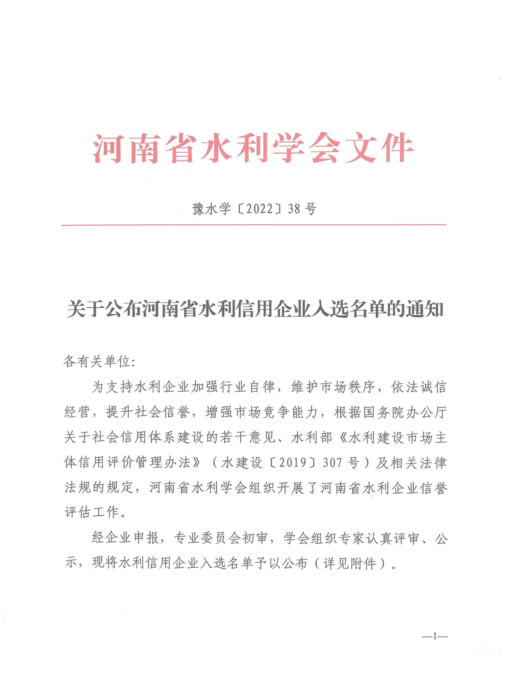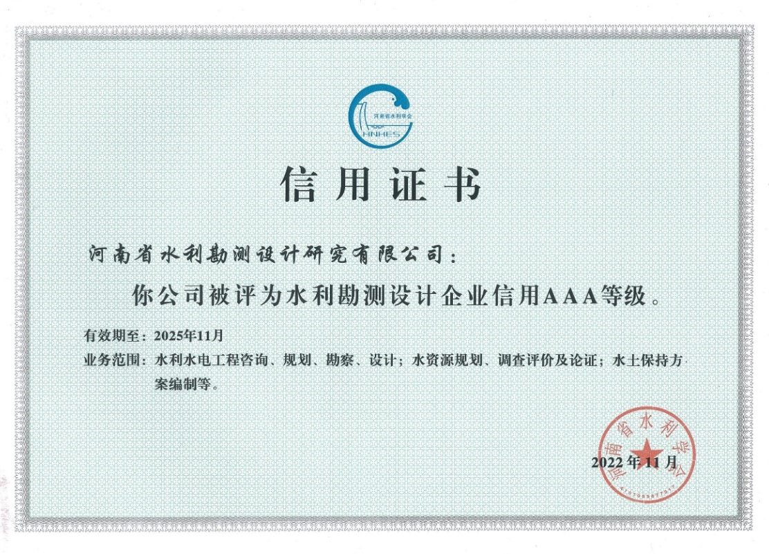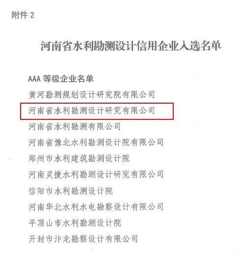 近日,河南省水利學會發布河南省水利信用企業入選名單,豫水設計公司被評為“水利勘測設計企業信用AAA等級”。