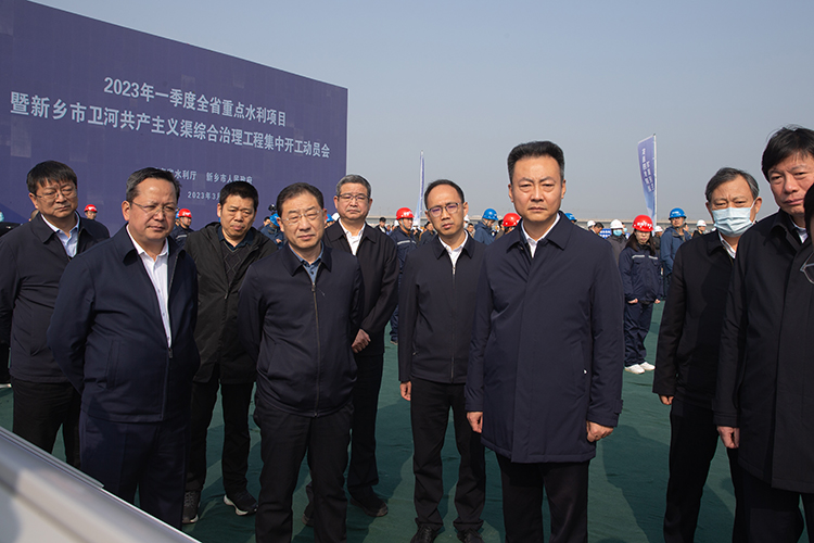 3月21日,2023年一季度全省重點水利項目暨新鄉市衛河共產主義渠綜合治理工程開工動員會在新鄉衛輝召開。省政府副省長楊青玖出席開工儀式并下達開工令。省水利廳廳長申季維、新鄉市委書記李衛東、河南水投集團黨委書記、董事長楊繼成出席,省水利廳副廳長祝云憲主持。