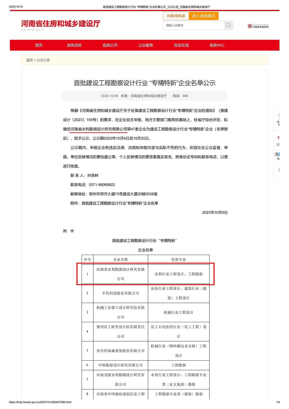10月9日,河南省住建廳公示首批建設(shè)工程勘察設(shè)計(jì)行業(yè)專精特新企業(yè)名單,河南省內(nèi)僅47家勘察設(shè)計(jì)企業(yè)入選,我公司在眾多參評(píng)單位中脫穎而出,位列榜首。
