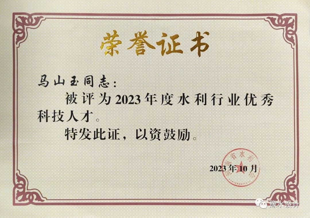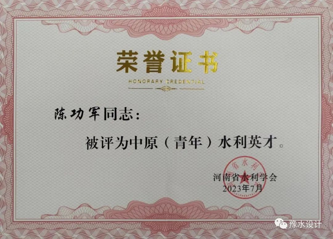 在河南省水利學(xué)會組織的2023年度中原(青年)水利英才、水利行業(yè)優(yōu)秀科技人才評選活動中,公司數(shù)字工程院副院長陳功軍獲2023年度中原(青年)水利英才,馬山玉獲2023年度水利行業(yè)優(yōu)秀科技人才。在此對兩位同志表示祝賀。