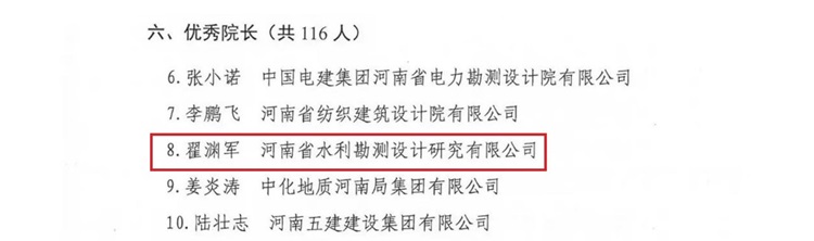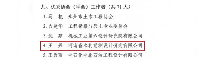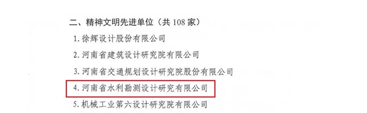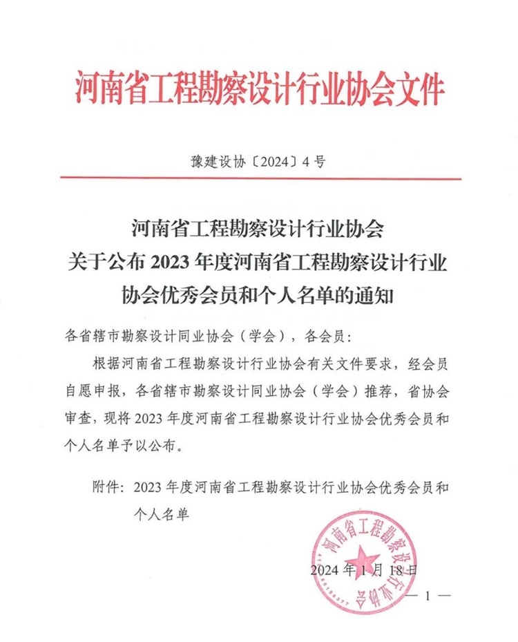 近日,河南省工程勘察設(shè)計(jì)行業(yè)協(xié)會(huì)公布“2023年度河南省工程勘察設(shè)計(jì)行業(yè)優(yōu)秀會(huì)員和個(gè)人名單”通知,公司獲得多項(xiàng)表彰。