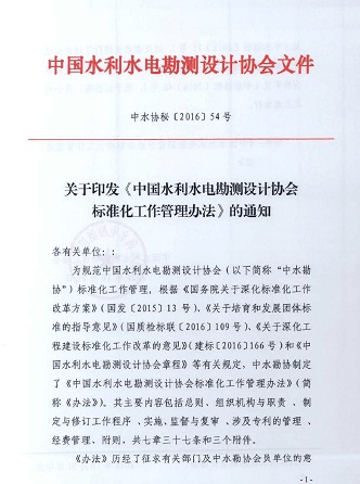 關于印發《中國水利水電勘測設計協會標準化工作管理辦法》的通知