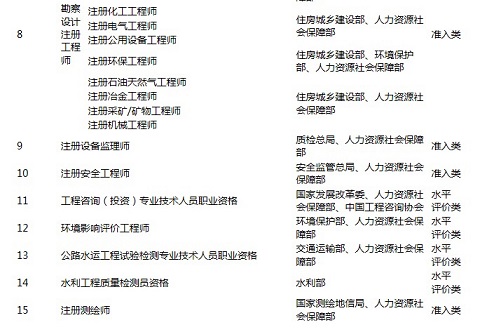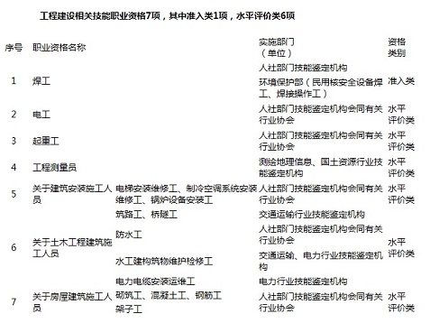 與工程建設相關的共22項,其中,專業技術人員職業資格15項,技能人員職業資格7項,具體見下表。