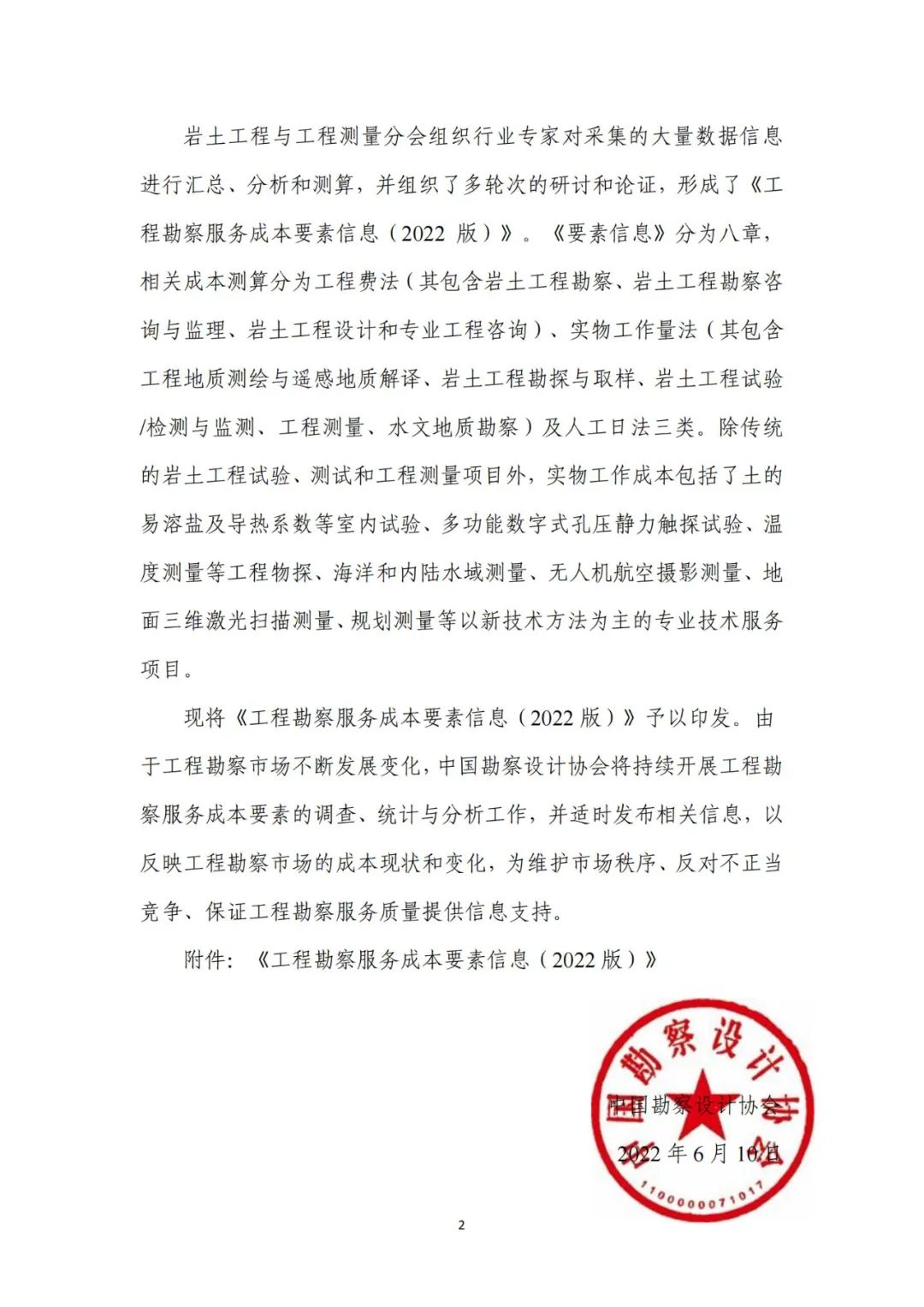 近日,中國勘察設計協會印發《工程勘察服務成本要素信息(2022版)》。